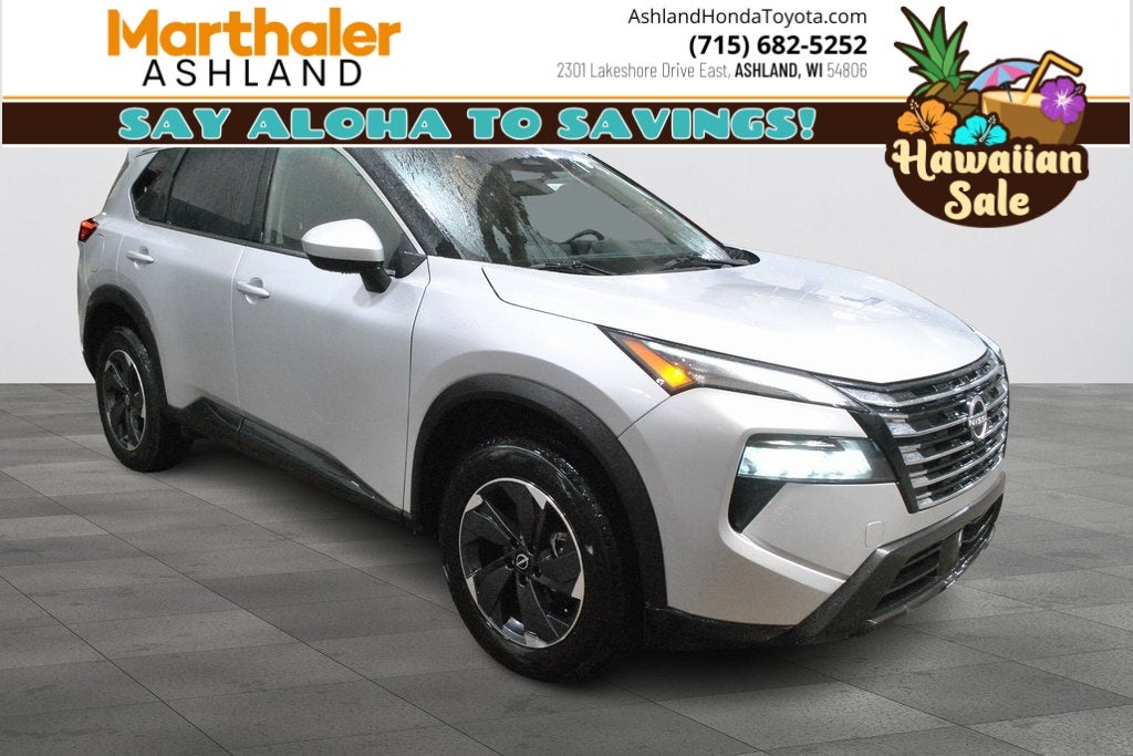 Only 32K Miles! Brilliant Silver Metallic 2025 Nissan Rogue SV AWD, CVT with Xtronic 1.5L DOHC, Safety Sensing (Pre-Collision Detection, Adaptive Cruise, Lane Keep Assist, Auto High Beams), Blind Spot Monitor, Cross Traffic Alert, Back-Up Camera, Push Button Start, Remote Start, Power Liftgate, *** CLEAN VEHICLE HISTORY REPORT ***, Touch Screen Audio, Bluetooth® Hands Free Phone, Sirius XM, Apply Car Play/ Android Auto, Power Windows & Locks, Power Mirrors, Air Conditioning, Dual Zone Climate Control, Cruise Control, Alloy/Chrome Wheels, Tinted Windows, Traction Control, ABS, Dual Stage Advanced Airbags, Keyless Entry, and More!